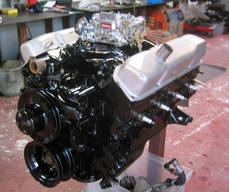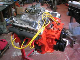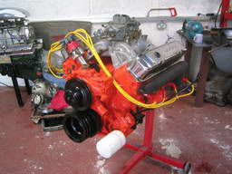10:1 compression, Hyperautectic pistons, Competition cams cam shaft, ported heads, fitted with stainles steel valve seats, Edelbrock inlet manifold, and a 750 vac sec Holley carburetor, Malory distributor, this engine is fitted in a 65 Dodge Monaco. Producing in the reigon of 450 horse power. |